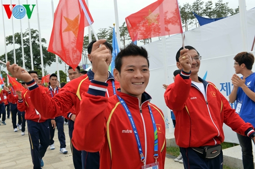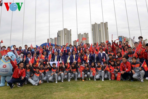 Đoàn TTVN tại lễ thượng cờ ở Incheon, Hàn Quốc. (Ảnh: Thắng Quang) |