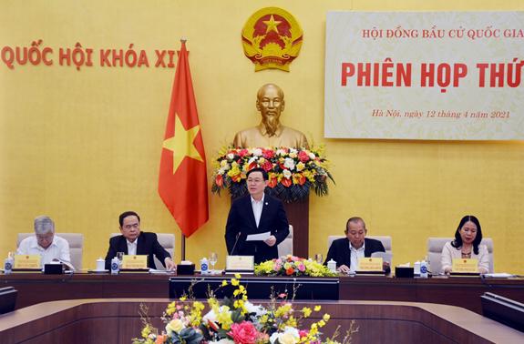 Chiều 12-4, dưới sự chủ trì của đồng chí Vương Đình Huệ, Ủy viên Bộ Chính trị, Chủ tịch Quốc hội, Chủ tịch Hội đồng Bầu cử quốc gia, Hội đồng Bầu cử quốc gia tiến hành Phiên họp thứ 5.