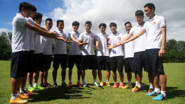 Cầu thủ học viện HAGL Arsenal JMG sáng làm tân sinh viên, chiều xỏ giày ra sân tập luyện. Ảnh: Văn Ngọc |