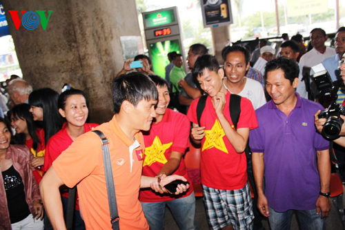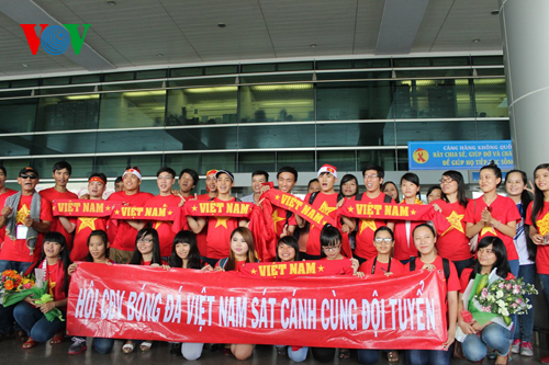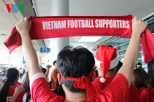 Mặc dù theo lịch bay phải đến 13h20 máy bay mới hạ cánh nhưng ngay từ giữa trưa, đông đảo cổ động viên thuộc hội Cổ động viên Việt Nam đã có mặt để chuẩn bị đón các cầu thủ Việt Nam. Nhiều cổ động viên đến từ các tỉnh thành phía Nam cũng có mặt tại sân bay.
