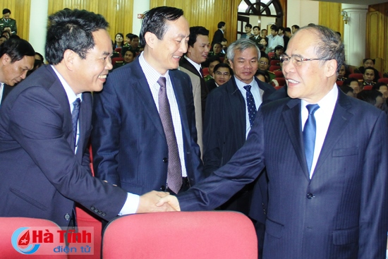 Chủ tịch Quốc hội Nguyễn Sinh Hùng chúc mừng Đảng bộ, chính quyền và đại biểu dân cử trên địa bàn Hà Tĩnh trong thời gian qua đã nỗ lực, phấn đấu không ngừng, xứng đáng với sự tin tưởng của cử tri, nhân dân tỉnh nhà. Trong thời gian tới, Chủ tịch Quốc hội mong muốn Hà Tĩnh tiếp tục thực hiện tốt các chỉ đạo của Trung ương về công tác bầu cử đại biểu Quốc hội và đại biểu HĐND các cấp, xem đó là nhiệm vụ chính trị trọng tâm, để cuộc bầu cử trở thành ngày hội của toàn dân, toàn quân, trở thành đợt sinh hoạt chính trị sâu rộng. Phải tổ chức bầu cử đảm bảo dân chủ, đúng pháp luật, công bằng, không lãng phí, không được để các thế lực thù địch phá hoại, tác động làm sai lệch định hướng. Phải lựa chọn những người có đức, có tài, có tâm đứng ra lo việc nước, toàn tâm, toàn ý cho cuộc sống của nhân dân... Chủ tịch Quốc hội cũng đề nghị, Hà Tĩnh cần tập trung cao để đẩy mạnh công cuộc phát triển KT – XH, đảm bảo QP – AN, tăng cường sức cạnh tranh về nguồn nhân lực, chất lượng hàng hóa, nền hành chính công, đảm bảo “hàm lượng” KH-CN. Đặc biệt, 5 năm tới, Hà Tĩnh cần chủ động thực hiện tốt các nhiệm vụ như: xây dựng NTM kiểu mẫu gắn với xây dựng đô thị văn minh, hiện đại; tập trung hoàn thiện một bước để 10 năm tới hoàn thiện cơ bản hệ thống hạ tầng thủy lợi; đẩy mạnh công tác nghiên cứu KH-CN và ứng dụng có hiệu quả vào tất cả các lĩnh vực; quan tâm đào tạo, bồi dưỡng nguồn nhân lực có tay nghề, chuyển dịch cơ cấu lao động để các nhà máy, xí nghiệp trên địa bàn có tối thiểu 75% lao động là người Hà Tĩnh... Theo Tiến Dũng – Thăng Long/Báo Hà Tĩnh |