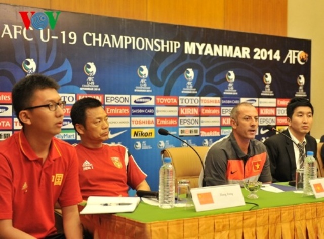 Trước khi giải U19 châu Á khởi tranh, các HLV tại “bảng tử thần” đều đã đưa ra những nhận định riêng của mình trong buổi họp báo trưa 8/10. Đánh giá về các đối thủ, HLV của U19 Trung Quốc - Zheng Xiong cho rằng Nhật Bản và Hàn Quốc là hai đối thủ mạnh: “Tôi chưa từng trực tiếp chạm trán Nhật Bản và Hàn Quốc, nhưng qua những trận đấu đã xem, có thể thấy đây là hai đội bóng rất mạnh. Tôi hi vọng các học trò sẽ thể hiện được quyết tâm chiến đấu trên sân, để các khán giả ở Trung Quốc có thể cảm thấy tự hào về chúng tôi.”