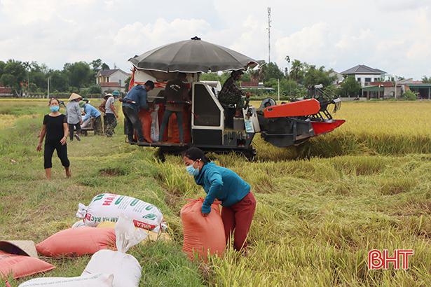 Địa phương đầu tiên ở Hà Tĩnh hoàn thành thu hoạch lúa hè thu, dẫn đầu về năng suất