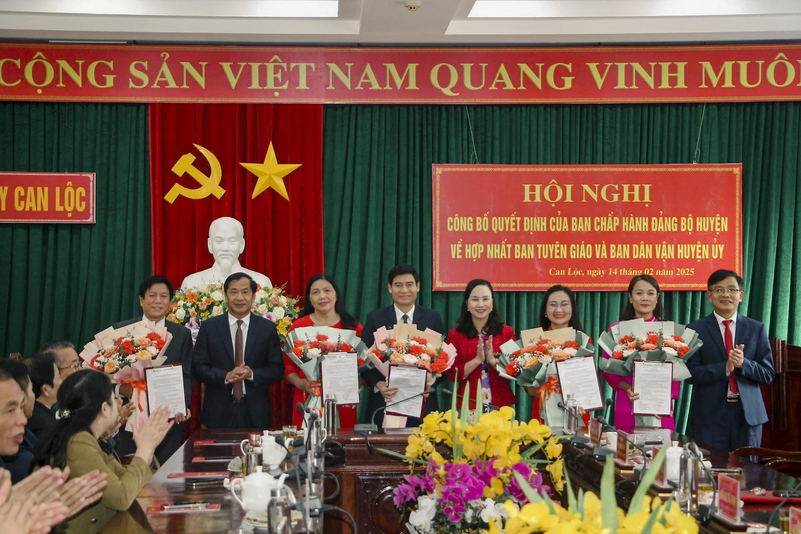 Sáng ngày 14/2/2025, Ban Thường vụ Huyện ủy Can Lộc tổ chức Lễ công bố Quyết định hợp nhất Ban Tuyên giáo Huyện ủy và Ban Dân vận Huyện ủy.