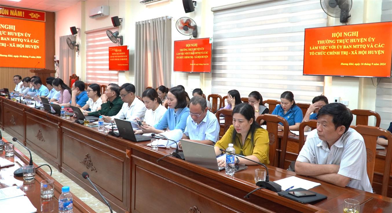Thường trực Huyện ủy Hương Khê làm việc với Ủy ban Mặt trận Tổ quốc và các tổ chức chính trị - xã hội cấp huyện