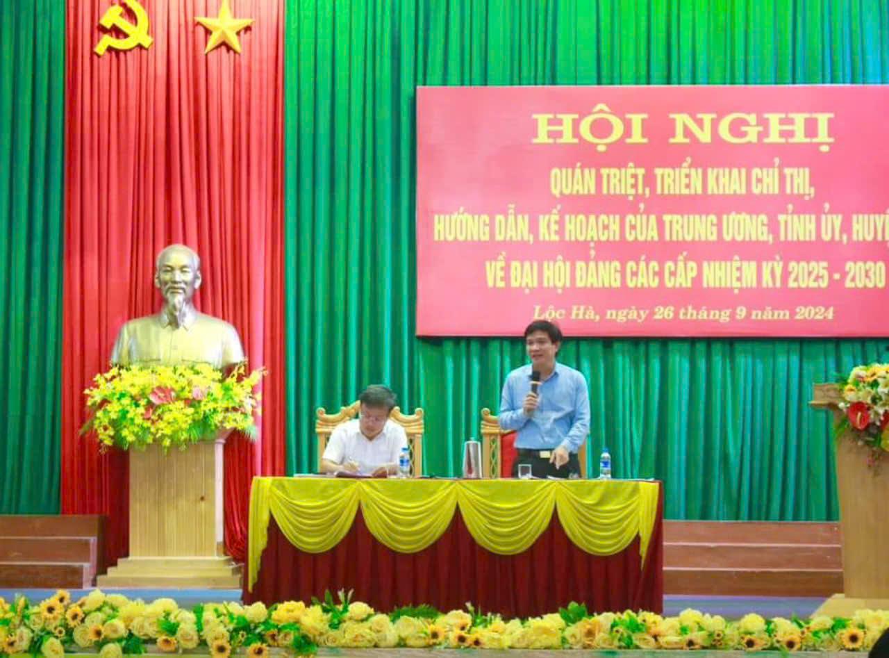 Vừa qua, Ban Thường vụ Huyện ủy Lộc Hà đã tổ chức Hội nghị quán triệt Chỉ thị, Hướng dẫn, Kế hoạch của Trung ương, Tỉnh ủy, Huyện ủy về đại hội đảng bộ các cấp, tiến tới Đại hội đại biểu toàn quốc lần thứ XIV của Đảng cho đội ngũ cán bộ cốt cán từ huyện đến cơ sở.