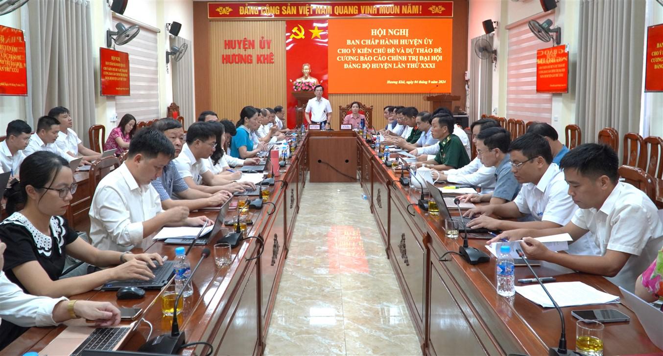 Chiều 04/9/2024, Ban Chấp hành Đảng bộ huyện Hương Khê tổ chức Hội nghị cho ý kiến về chủ đề và dự thảo đề cương Báo cáo chính trị Đại hội Đảng bộ huyện Hương Khê lần thứ XXXI, nhiệm kỳ 2025-2030.