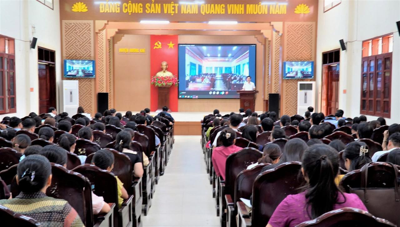 Sáng ngày 27/8/2024, huyện Hương Khê tổ chức Hội nghị bồi dưỡng chính trị cho đội ngũ cán bộ thuộc ngành Giáo dục - Đào tạo trên địa bàn bằng hình thức trực tiếp và trực tuyến tại điểm cầu huyện và 24 điểm cầu của các trường học, từ bậc học mầm non đến trung học phổ thông trên địa bàn huyện với gần 1.800 đại biểu, cán bộ, giáo viên tham gia.
