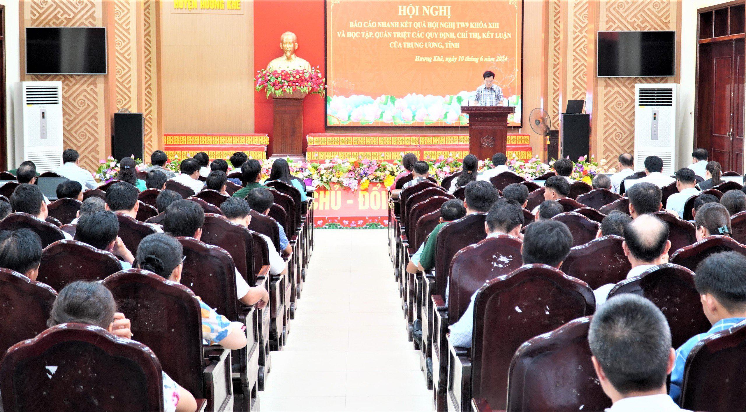 Huyện ủy Hương Khê tổ chức Hội nghị báo cáo nhanh kết quả Hội nghị Trung ương 9 khóa XIII và học tập, quán triệt, triển khai thực hiện các chỉ thị, quy định, kết luận của Trung ương, của tỉnh