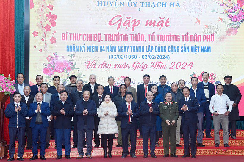 Nhân kỷ niệm 94 năm ngày thành lập Đảng Cộng sản Việt Nam (03/02/1930-03/02/2024) và mừng xuân Giáp Thìn năm 2024, Ban Thường vụ Huyện ủy Thạch Hà tổ chức Hội nghị gặp mặt gần 400 bí thư chi bộ, thôn trưởng, tổ trưởng tổ dân phố. Đồng chí Võ Hồng Hải, Ủy viên Ban Thường vụ Tỉnh ủy, Trưởng Ban Tổ chức Tỉnh ủy cùng đại diện các ban, ngành cấp tỉnh tham dự.