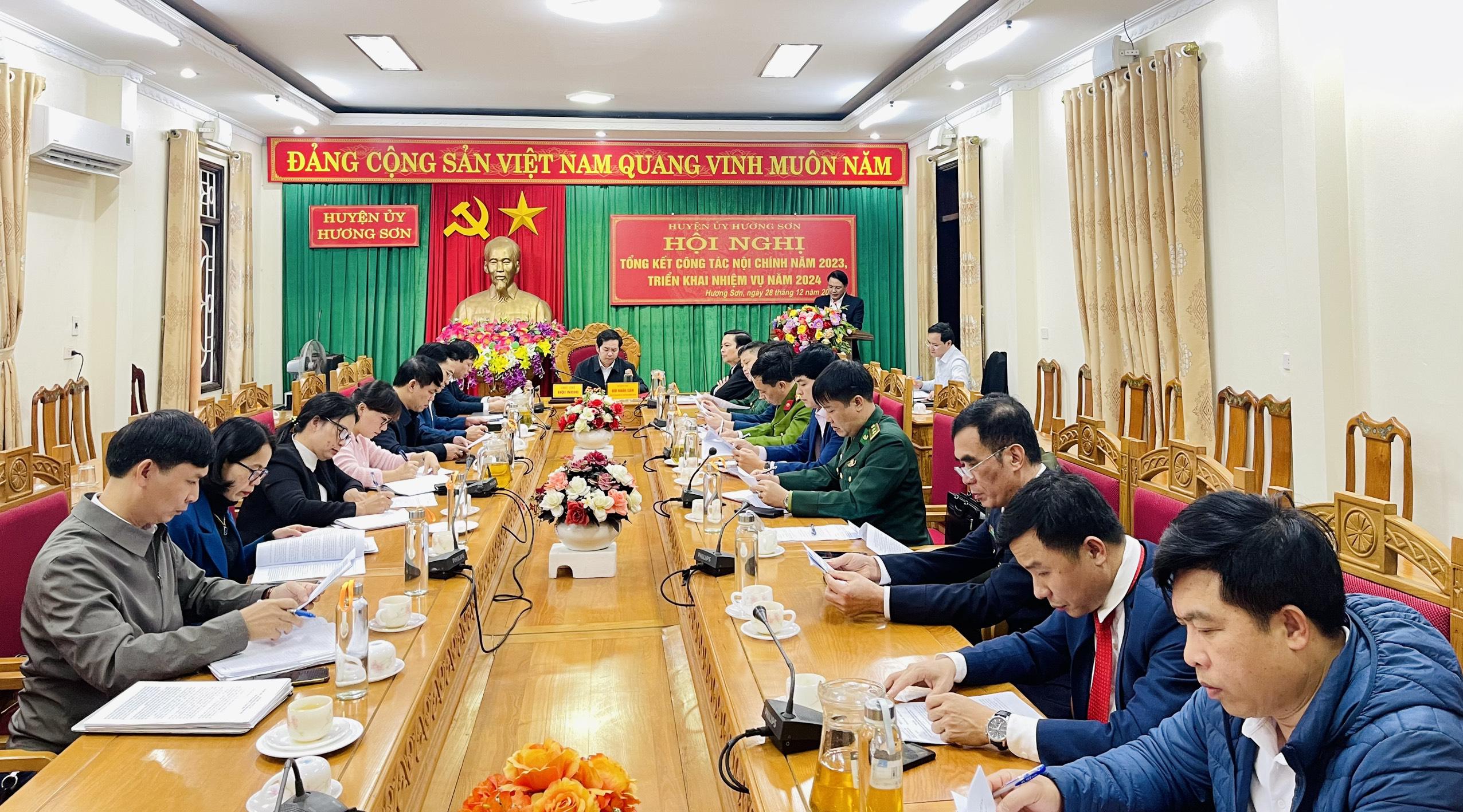 Năm 2023, Ban Thường vụ Huyện ủy Hương Sơn đã tăng cường lãnh đạo, chỉ đạo, triển khai công tác nội chính, phòng, chống tham nhũng, tiêu cực đạt được kết quả quan trọng, góp phần giữ vững ổn định chính trị, bảo đảm an ninh trật tự, tạo môi trường ổn định, thuận lợi phát triển kinh tế - xã hội.