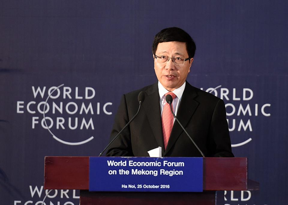 Nhận lời mời của Chủ tịch Diễn đàn Kinh tế Thế giới (WEF) Borge Brende, Phó Thủ tướng Thường trực Chính phủ Phạm Bình Minh đã tham dự Hội nghị Thượng đỉnh về phát triển bền vững (SDIS) và có phát biểu chính tại Phiên họp “Thúc đẩy lộ trình lương thực với vai trò dẫn dắt của các quốc gia”.