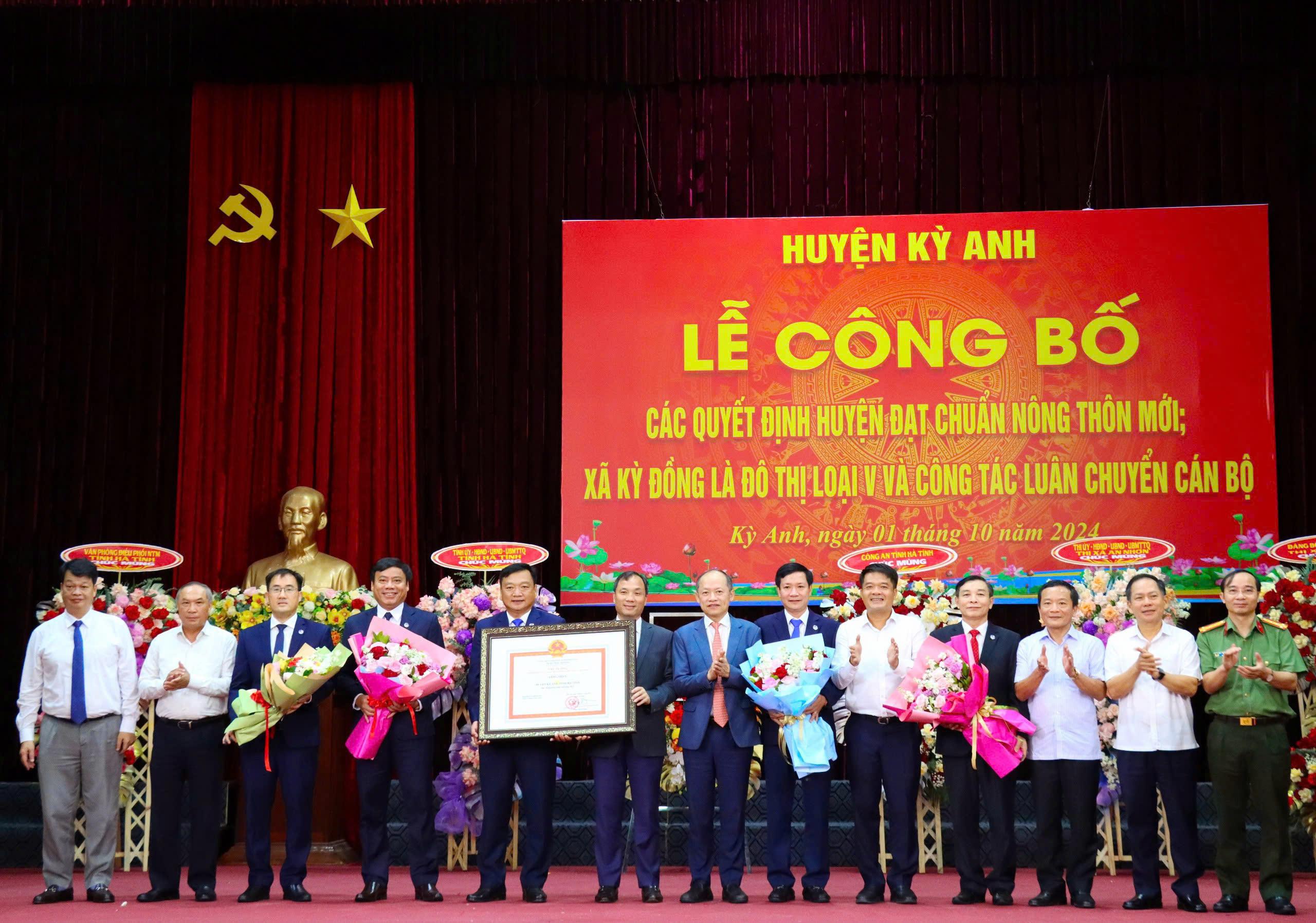 Sáng ngày 01/10/2024, huyện Kỳ Anh tổ chức Lễ công bố Quyết định của Thủ tướng Chính phủ công nhận huyện Kỳ Anh đạt chuẩn nông thôn mới năm 2023; Quyết định của Ủy ban nhân dân tỉnh công nhận xã Kỳ Đồng đạt Đô thị loại V và các quyết định của Ban Thường vụ Huyện ủy về công tác cán bộ.