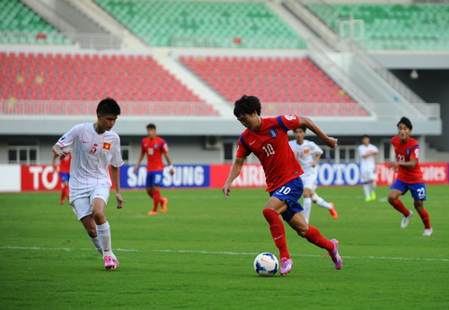 Công Phượng và các đồng đội không thể tạo được bất ngờ trước U19 Hàn Quốc (Ảnh: Nhung Trần). |