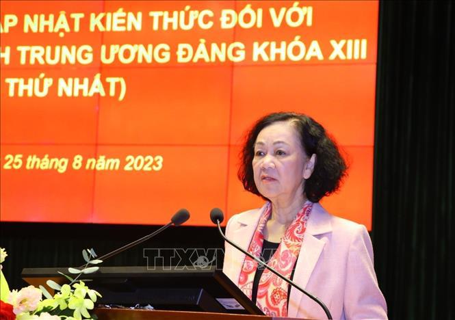 Chiều 25-8, tại Hà Nội, Học viện Chính trị quốc gia Hồ Chí Minh phối hợp Ban Tổ chức Trung ương tổ chức Lễ bế giảng Lớp bồi dưỡng, cập nhật kiến thức đối với Ủy viên Ban Chấp hành Trung ương Đảng khóa XIII (Lớp thứ nhất). Đồng chí Trương Thị Mai, Ủy viên Bộ Chính trị, Thường trực Ban Bí thư, Trưởng Ban Tổ chức Trung ương, Trưởng Ban Chỉ đạo lớp học dự và phát biểu chỉ đạo.