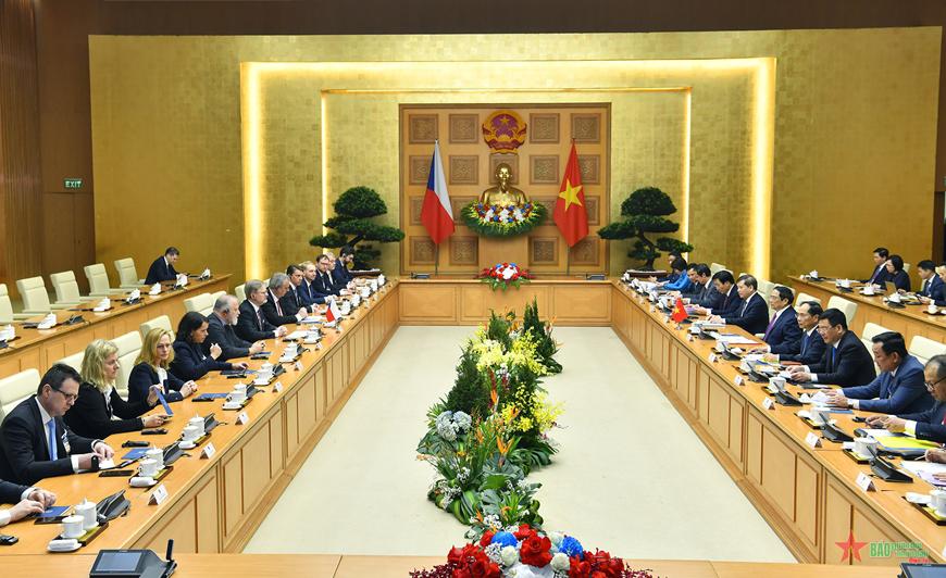Nhận lời mời của Thủ tướng Chính phủ Phạm Minh Chính, Thủ tướng Cộng hòa Séc Petr Fiala thăm chính thức Việt Nam từ ngày 20 đến 22-4. Sau lễ đón chính thức sáng 21-4, Thủ tướng Chính phủ Phạm Minh Chính đã có cuộc hội đàm với Thủ tướng Petr Fiala.