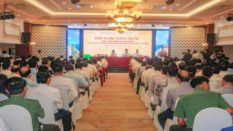Ngày 31/3, tại thành phố Nha Trang, tỉnh Khánh Hòa, Ban Tuyên giáo và Dân vận Trung ương chủ trì, phối hợp Bộ Công an, Bộ Dân tộc và Tôn giáo và Tỉnh ủy Khánh Hòa tổ chức Hội nghị toàn quốc quán triệt, triển khai một số văn bản mới của Ban Bí thư về công tác dân tộc, tôn giáo.