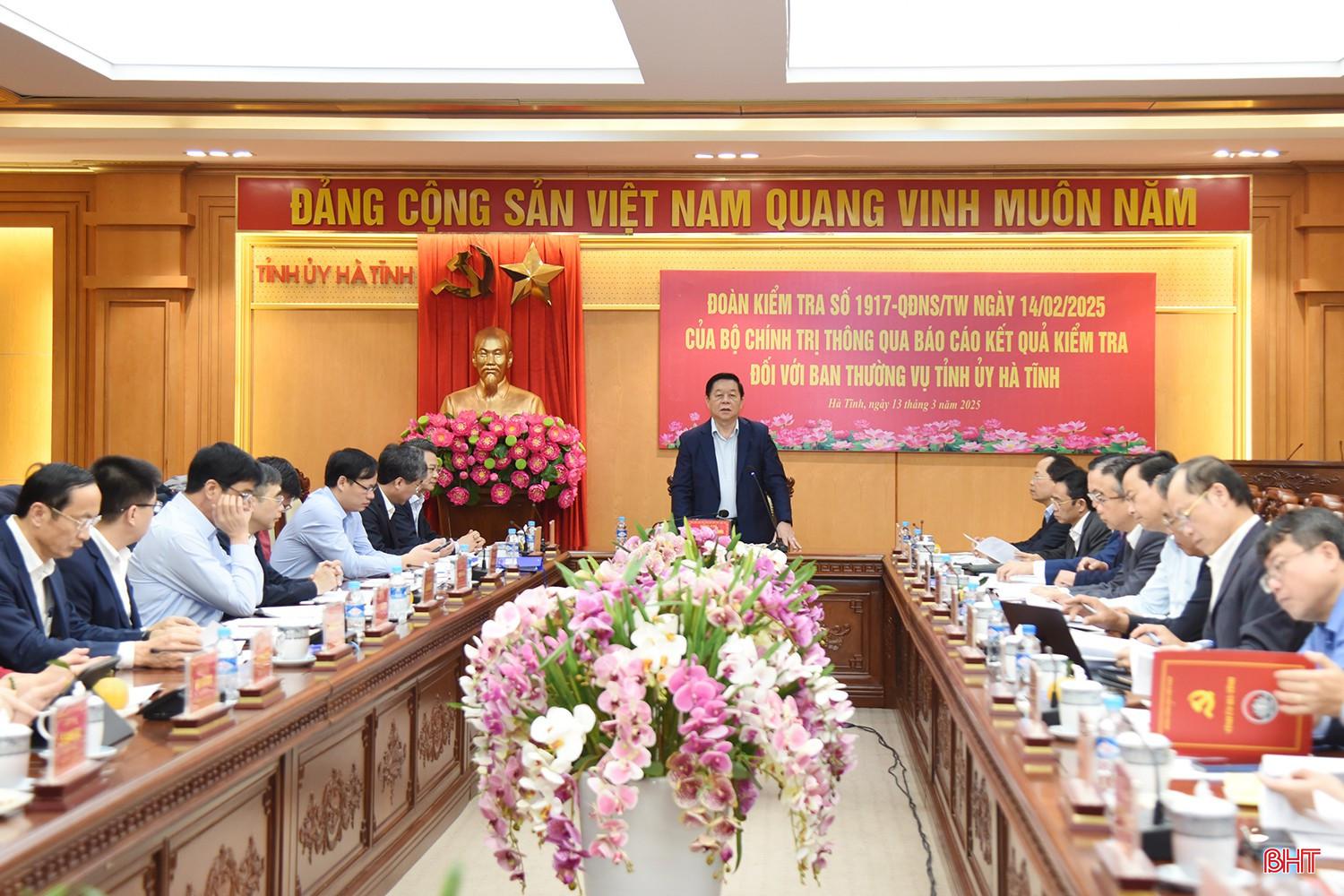 Đoàn Kiểm tra của Bộ Chính trị thông qua báo cáo kết quả kiểm tra đối với Ban Thường vụ Tỉnh ủy Hà Tĩnh