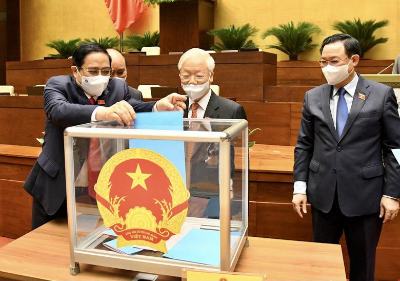 Chiều 28/7, Quốc hội họp phiên toàn thể tại Hội trường, thông qua Nghị quyết phê chuẩn đề nghị của Thủ tướng Chính phủ về việc bổ nhiệm Phó Thủ tướng Chính phủ (479/479 đại biểu tham gia biểu quyết tán thành) và Nghị quyết phê chuẩn đề nghị của Thủ tướng Chính phủ về việc bổ nhiệm Bộ trưởng, thành viên khác của Chính phủ (476/476 đại biểu tham gia biểu quyết tán thành).