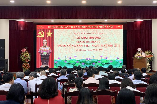 Chiều 3-10-2020, tại Hà Nội, Ban Tuyên giáo Trung ương tổ chức Lễ khai trương Trang tin điện tử Đảng Cộng sản Việt Nam - Đại hội XIII tại địa chỉ:daihoi13.dangcongsan.vn.