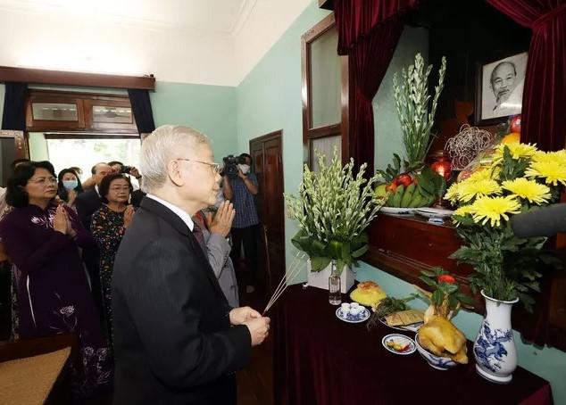 Nhân kỷ niệm 75 năm Cách mạng tháng Tám và Quốc khánh 2/9, sáng 1/9, Tổng Bí thư, Chủ tịch nước Nguyễn Phú Trọng đã đến dâng hương tưởng niệm Chủ tịch Hồ Chí Minh tại Nhà 67, Khu Di tích Chủ tịch Hồ Chí Minh tại Phủ Chủ tịch.