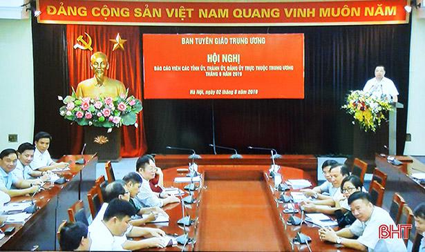 Đó là chỉ đạo của Phó Trưởng ban Tuyên giáo Trung ương Lê Mạnh Hùng tại hội nghị trực tuyến toàn quốc báo cáo viên các tỉnh ủy, thành ủy, Đảng ủy trực thuộc Trung ương tháng 8/2019, diễn ra sáng nay (2/8) tại Hà Nội do Ban Tuyên giáo Trung ương tổ chức.
