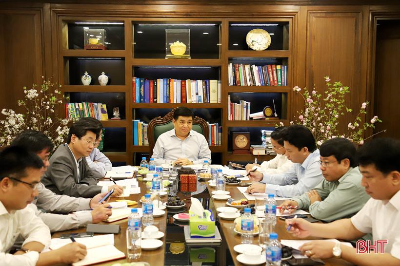 Chiều 8/4, tại Hà Nội, Bí thư Tỉnh ủy Hà Tĩnh Lê Đình Sơn, Chủ tịch UBND tỉnh Đặng Quốc Khánh và Phó Chủ tịch UBND tỉnh Dương Tất Thắng có buổi làm việc với Bộ trưởng Bộ KH&ĐT Nguyễn Chí Dũng về việc rà soát, điều chỉnh và lập mới quy hoạch tỉnh; một số vấn đề liên quan đến dự án khai thác mỏ sắt Thạch Khê.