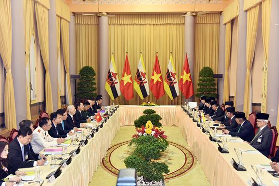 1. Nhận lời mời của ngài Nguyễn Phú Trọng, Tổng Bí thư Ban chấp hành Trung ương Đảng Cộng sản Việt Nam, Chủ tịch nước Cộng hòa xã hội chủ nghĩa Việt Nam, ngài Haji Hassanal Bolkiah, Quốc vương Brunei Darussalam đã thăm cấp Nhà nước tới Việt Nam từ ngày 26 đến 28-3-2019.