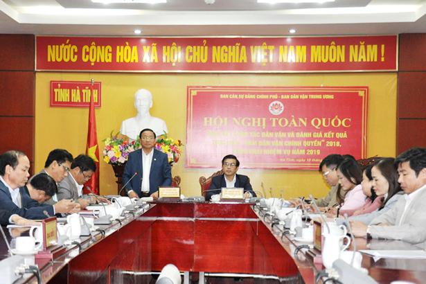 Sáng 10/1, hội nghị toàn quốc tổng kết công tác dân vận và đánh giá kết quả thực hiện “Năm dân vận chính quyền” 2018, triển khai nhiệm vụ năm 2019 đã được tổ chức tại Hà Nội.