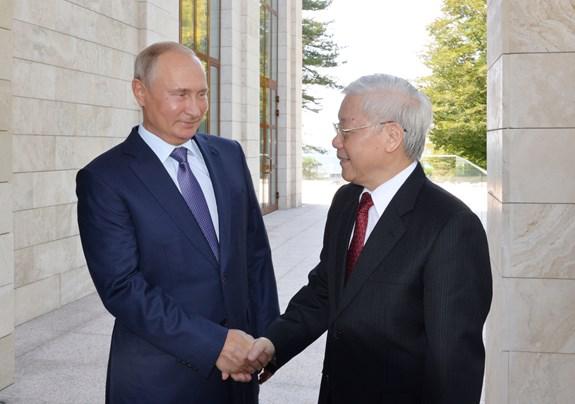 Chiều 6-9 (giờ địa phương), tại thành phố Sochi, Tổng Bí thư Nguyễn Phú Trọng đã tiến hành hội đàm với Tổng thống Nga Vladimir Putin.