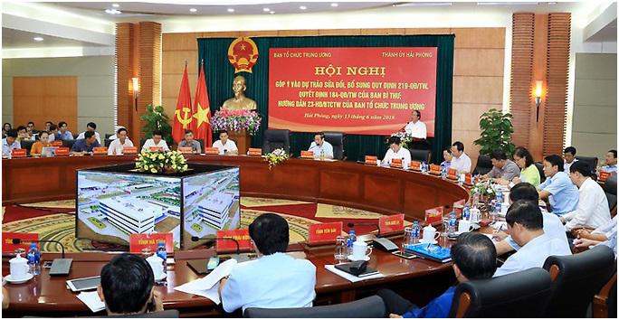 Ngày 13-6, tại Hải Phòng, Thừa Thiên Huế và Long An, Ban Tổ chức Trung ương tổ chức hội nghị góp ý vào dự thảo sửa đổi, bổ sung Quy định 219- QĐ/TW của Ban Bí thư về “chức năng, nhiệm vụ, tổ chức bộ máy cơ quan chuyên trách tham mưu, giúp việc tỉnh ủy, thành ủy”; Quyết định 184 của Ban Bí thư về “chức năng, nhiệm vụ, tổ chức bộ máy của trường chính trị tỉnh, thành phố trực thuộc Trung ương”; Hướng dẫn 23 của Ban Tổ chức Trung ương về chức năng, nhiệm vụ tổ chức bộ máy của ban bảo vệ, chăm sóc sức khỏe cán bộ tỉnh, thành phố” và lấy ý kiến của đại biểu đóng góp về trách nhiệm của cấp ủy, tổ chức đảng các cấp và cán bộ, đảng viên trong phòng, chống chạy chức, chạy quyền.