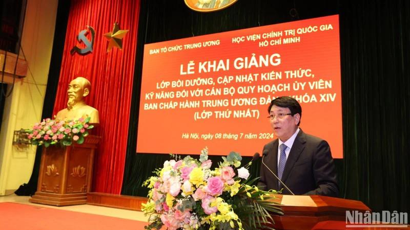 Sáng 8/7, tại Hà Nội, Học viện Chính trị quốc gia Hồ Chí Minh phối hợp Ban Tổ chức trung ương tổ chức lễ khai giảng Lớp bồi dưỡng, cập nhật kiến thức, kỹ năng đối với cán bộ quy hoạch Ủy viên Ban Chấp hành Trung ương Đảng khóa XIV (Lớp thứ nhất).