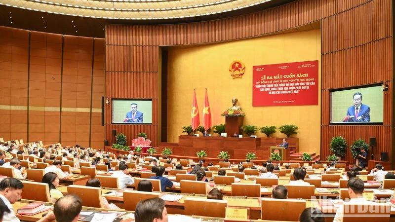 Chiều 16/7, tại Nhà Quốc hội, Ban Tuyên giáo Trung ương, Ủy ban Thường vụ Quốc hội và Nhà xuất bản Chính trị quốc gia Sự thật phối hợp tổ chức Lễ ra mắt cuốn sách “Quốc hội trong tiến trình đổi mới đáp ứng yêu cầu xây dựng, hoàn thiện Nhà nước pháp quyền xã hội chủ nghĩa Việt Nam” của Tổng Bí thư Nguyễn Phú Trọng.