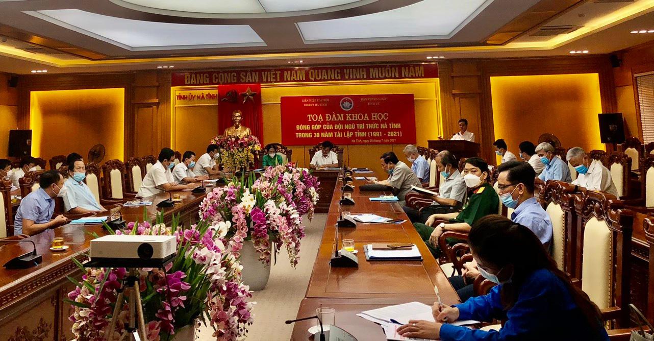 Nằm trong chuỗi hoạt động chào mừng kỷ niệm 190 năm thành lập (1831 - 2021), 30 năm tái lập (1991 - 2021) tỉnh Hà Tĩnh, sáng ngày 26/7/2021, Ban Tuyên giáo Tỉnh ủy và Liên hiệp các Hội Khoa học và Kỹ thuật tỉnh Hà Tĩnh đã tổ chức Tọa đàm khoa học với chủ đề “Đóng góp của đội ngũ trí thức Hà Tĩnh trong 30 năm tái lập tỉnh 1991 - 2021”.