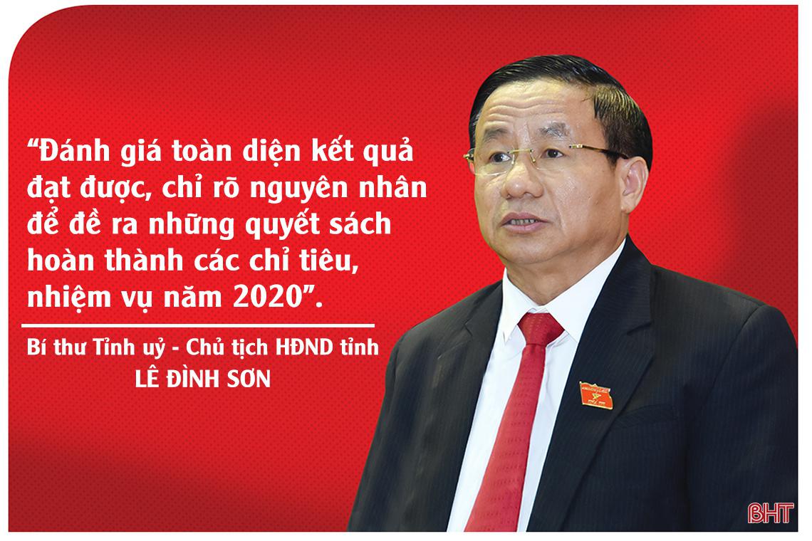 Bí thư Tỉnh ủy - Chủ tịch HĐND tỉnh Lê Đình Sơn đề nghị các ngành, các cấp, toàn thể cán bộ, chiến sỹ và Nhân dân tỉnh nhà, cộng đồng doanh nghiệp tiếp tục đoàn kết, đẩy mạnh các phong trào thi đua, phấn đấu hoàn thành và hoàn thành vượt mức các mục tiêu, chỉ tiêu đề ra theo nghị quyết của HĐND tỉnh Hà Tĩnh.