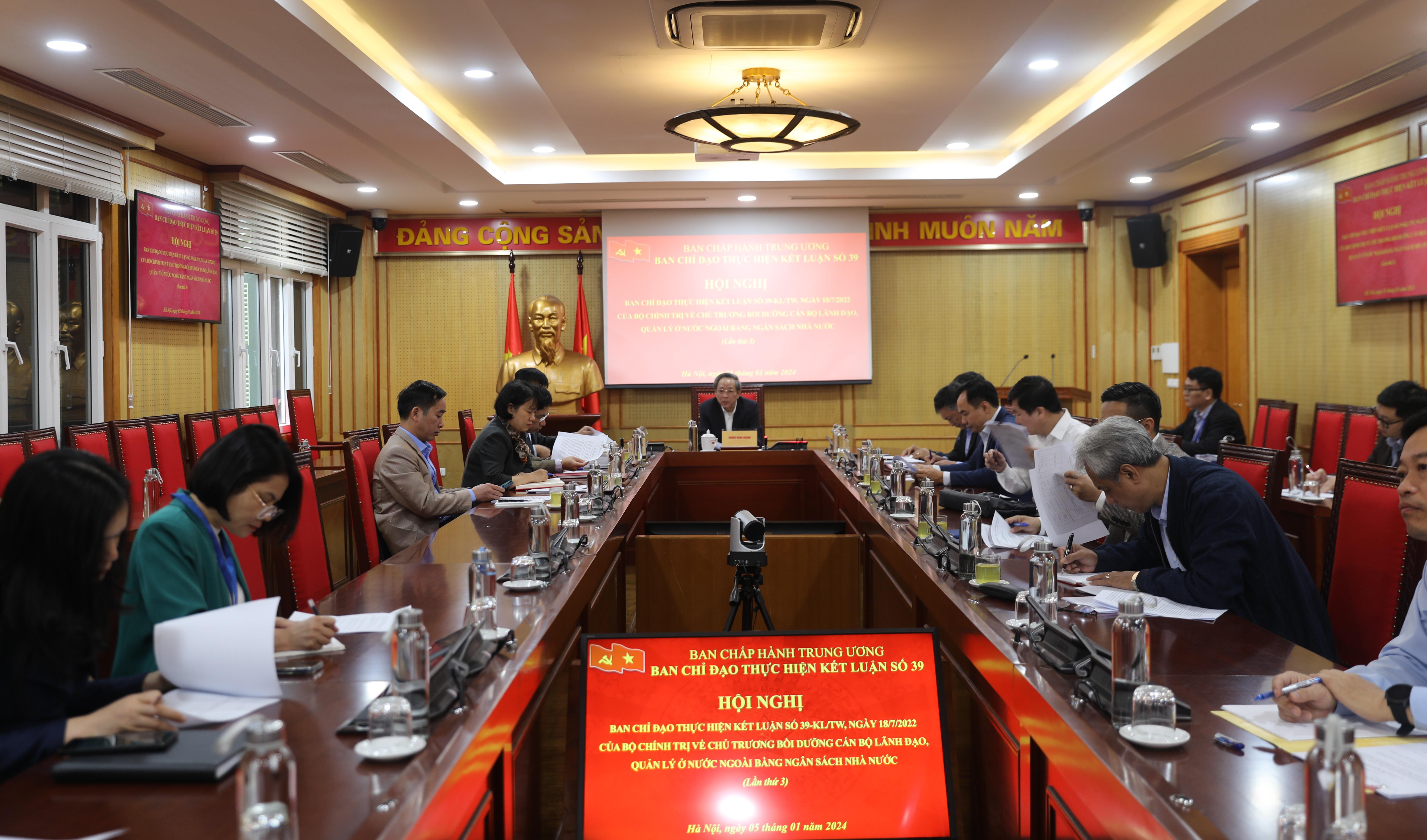 Sáng 5-1, tại Hà Nội đã diễn ra Hội nghị của Ban Chỉ đạo thực hiện Kết luận số 39-KL/TW ngày 18-7-2022 của Bộ Chính trị về chủ trương bồi dưỡng cán bộ lãnh đạo, quản lý ở nước ngoài bằng ngân sách nhà nước. Đồng chí Hoàng Đăng Quang, Ủy viên Trung ương Đảng, Phó Trưởng Ban Tổ chức Trung ương, Phó Trưởng Ban Chỉ đạo chủ trì Hội nghị.