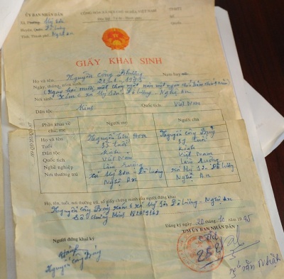 Giấy khai sinh bản gốc cho thấy năm sinh của Công Phượng (Ảnh: Nhung Trần) |